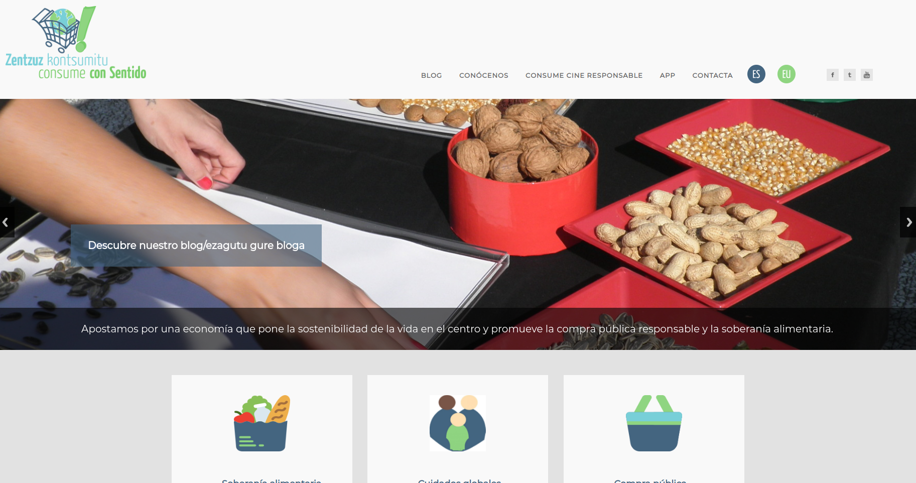 http://consumoresponsable.info/ es una página web que trata sobre el consumo responsable y está creada con un tema WordPress que he creado desde cero, con muchas opciones de personalización, opción multilenguaje con el plugin polylang, etc … Esta plantilla está en tramites pasa ser publicada en el repositorio de Themes de WordPress y por ahora la he publicado en GitHub, para que sea posible su descarga.
